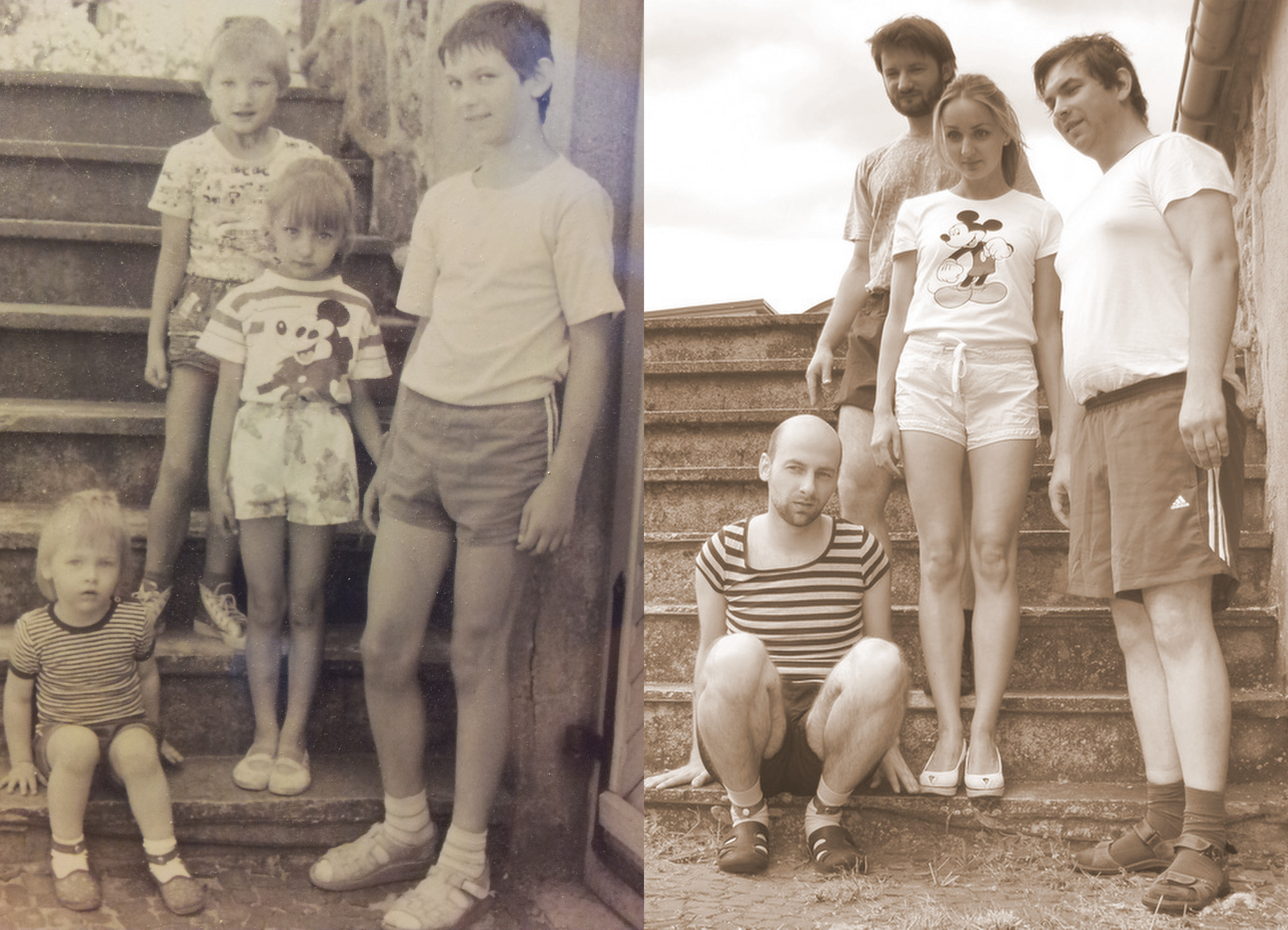 This summer holiday I would like to encourage you to recreate your old childhood pictures. It's so much fun! Choose a photo, gather people (that was our biggest challenge as we live in 3 different countries), find similar outfits and finally strike a pose as you did back then. I was so tempted to cut my fringe!